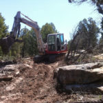 We were drawn to the property because of the water developement potential. There is a year round stream and a spring on it with 3 types of water rights applied for including 5 acre feet of storage rights , 15 acres of irrigation and .5 cfs of available water for use from the stream and the spring. The previous owner wasn’t able to do any developement on it and the property had been idle since the 1950’s. First line of business…. build a road to access the creek.